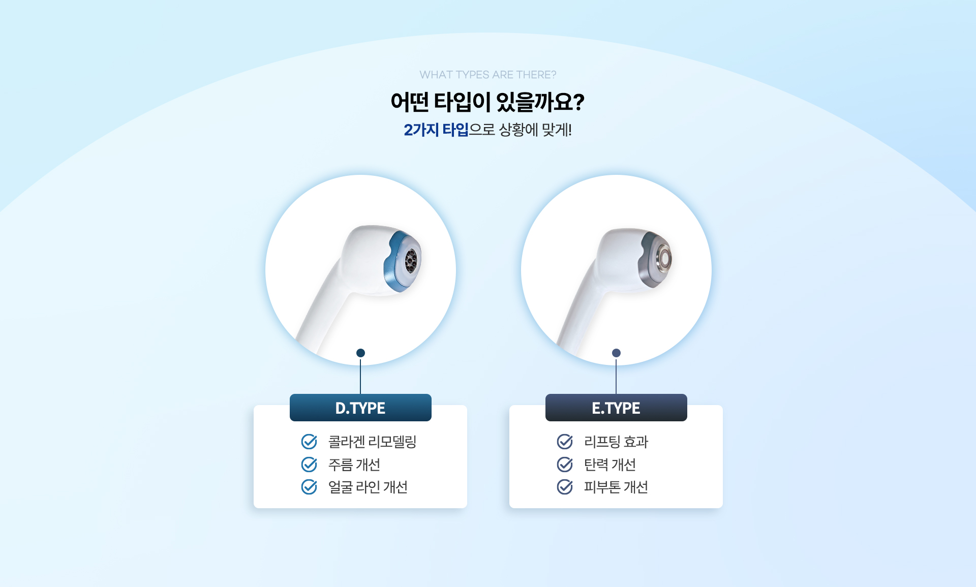 유전가열을 변형하여 진피층 가열, 이론상 진피의 온도가 가장 높음2가지 타입으로 상황에 맞게!